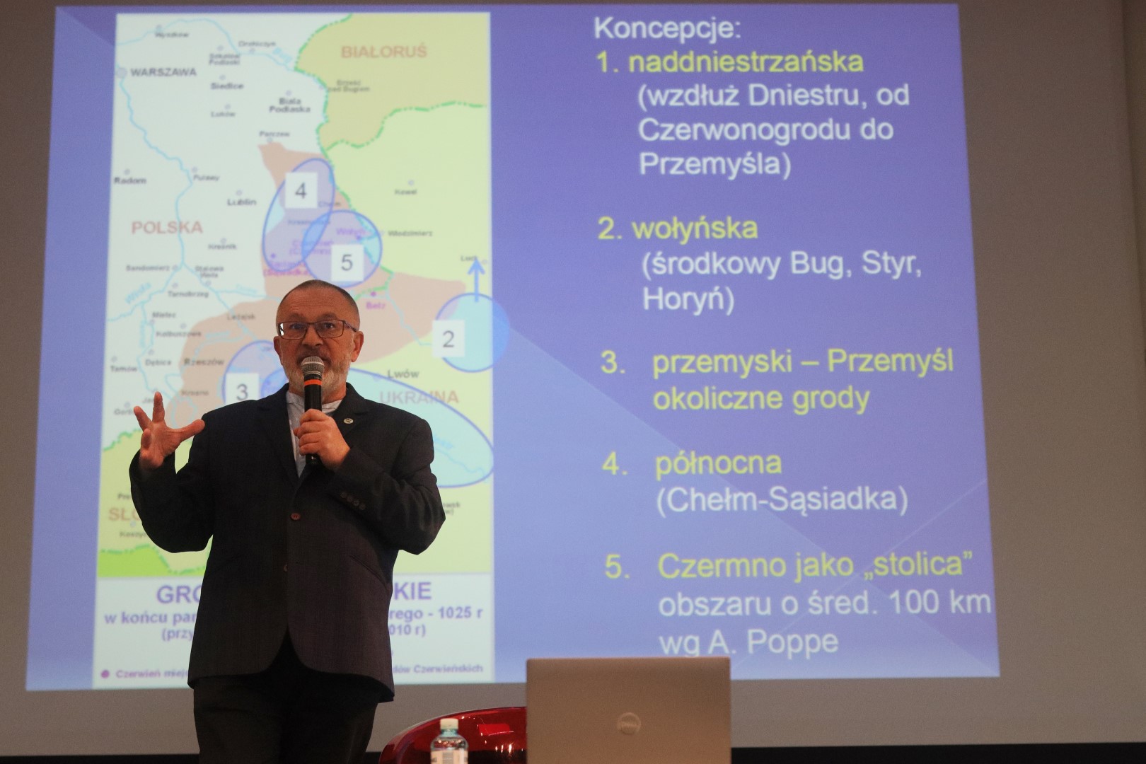 Tematem spotkania były czasy panowania Bolesława Chrobrego oraz znaczenie Grodów Czerwieńskich – kluczowych punktów na średniowiecznej mapie politycznej Polski i Rusi. Prelegent z niezwykłą pasją przybliżał młodzieży realia życia wczesnego średniowiecza, opowiadał o polityce władców, konfliktach pogranicza oraz historycznym znaczeniu regionu.