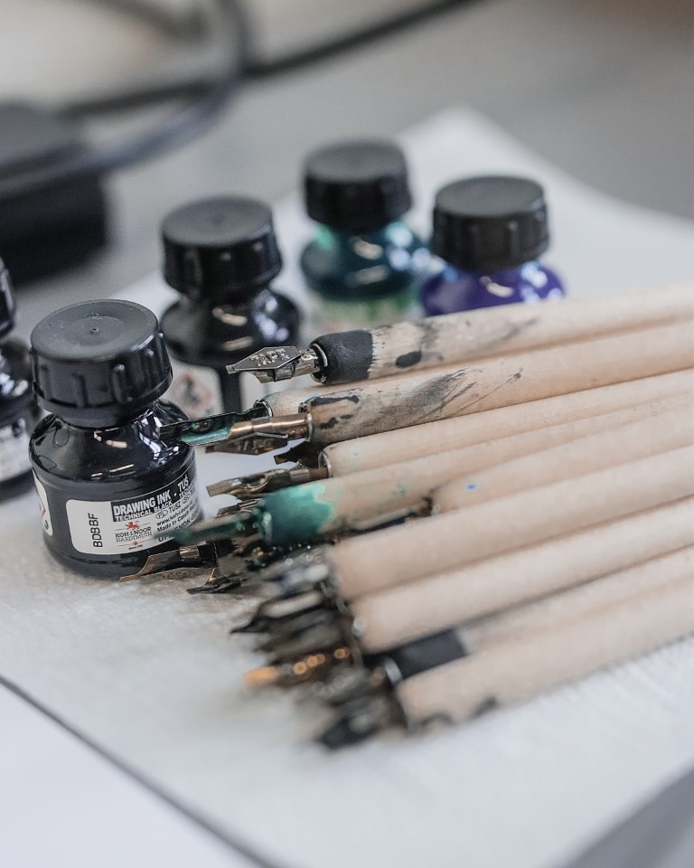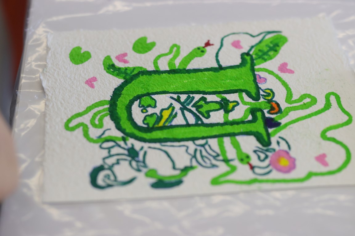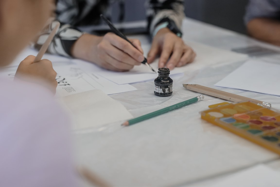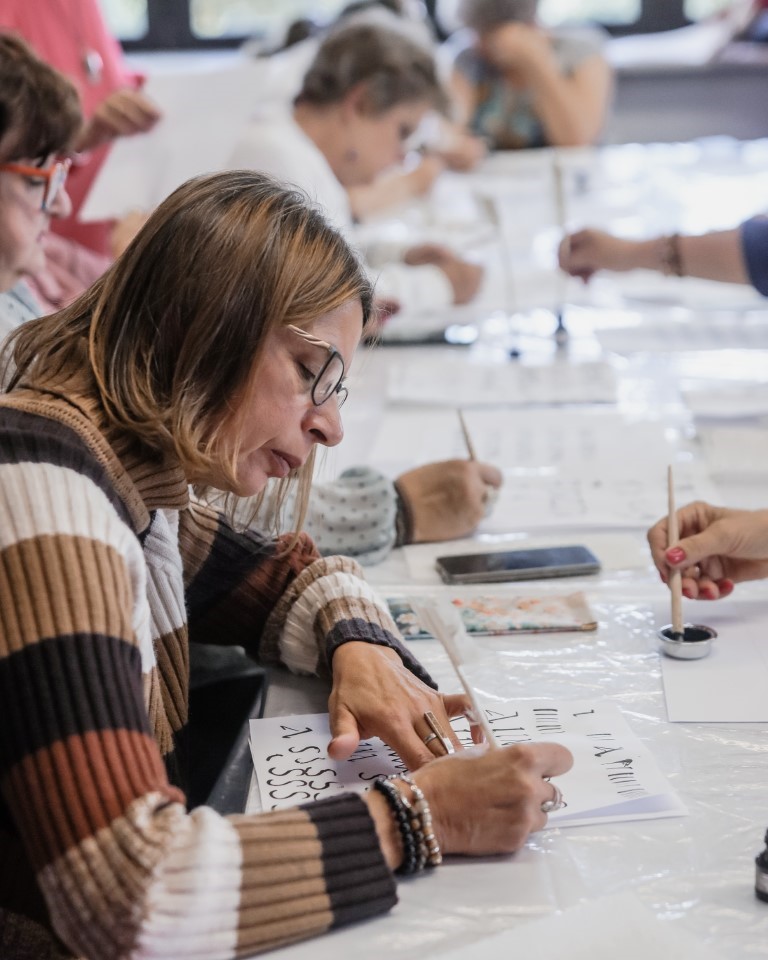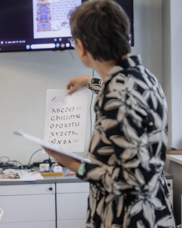 Za nami warsztaty z  kaligrafii i iluminacji dla dzieci i seniorów. Podczas spotkania uczestnicy poznali techniki pisania gęsim piórem, stylizowanym piórkiem maczanym w atramencie, kreślili inicjały oraz zdobili teksty motywami roślinnymi, zwierzęcymi i symbolicznymi. Praca odbywały się na papierze czerpanym, z wykorzystaniem wzorów zaczerpniętych ze średniowiecznych manuskryptów.
