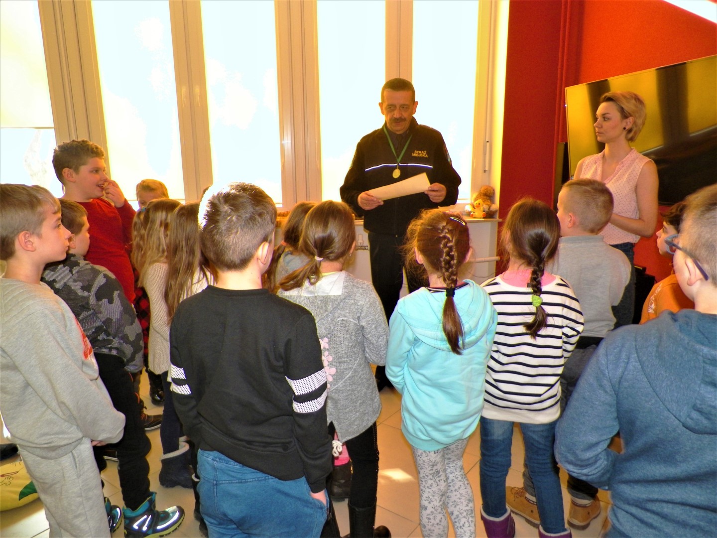 W ramach cyklicznych spotkań pn.” Kim zostanę, gdy dorosnę…” biblioteka gościła Funkcjonariusza Straży Miejskiej oraz trzecioklasistów z SP nr 7. Spotkanie obfitowało w wiele ciekawych informacji na temat pracy strażników miejskich. Funkcjonariusz w sposób niezwykle ciekawy przedstawił dzieciom swoje obowiązki zawodowe, co wywołało lawinę pytań zaciekawionych słuchaczy. Bardzo dziękujemy za wizytę.