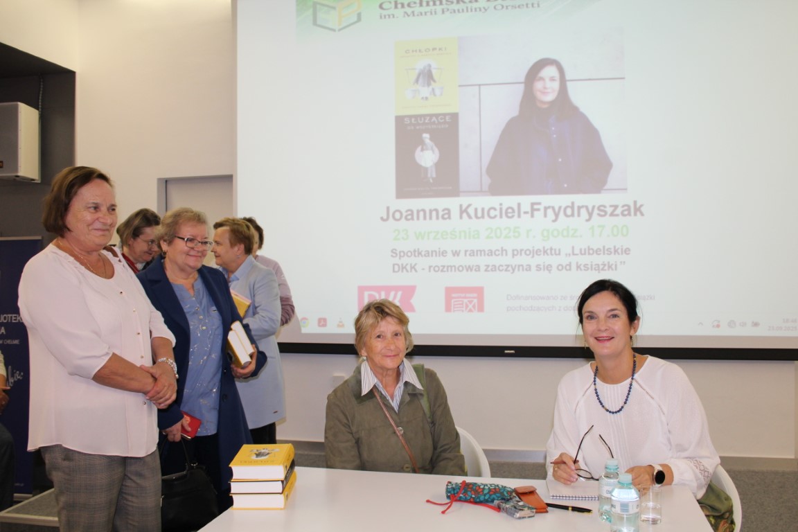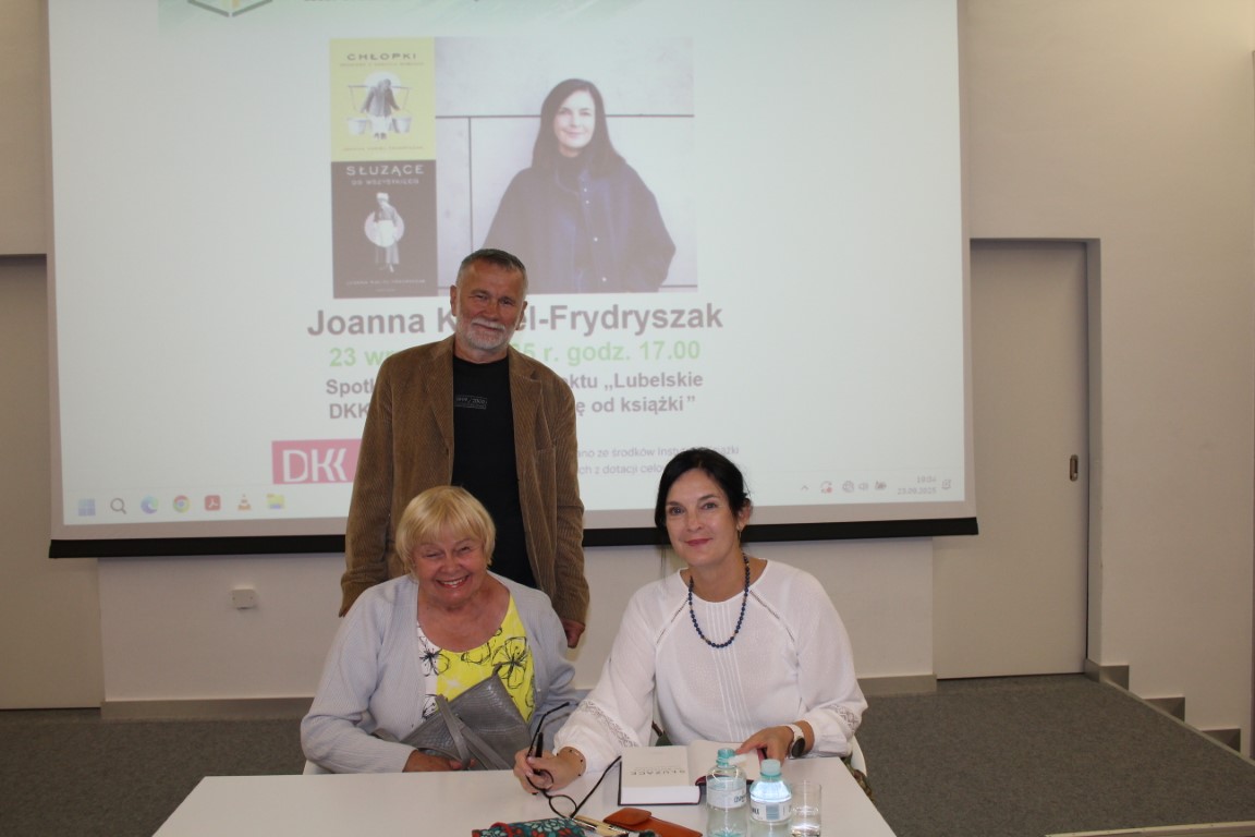 Spotkanie autorskie z Joanną Kuciel-Frydryszak, pisarką i autorką polskiego fenomenu sprzedażowego XXI w., było niezwykle ekscytującym wydarzeniem, zrealizowanym w ramach projektu „Lubelskie DKK – rozmowa zaczyna się od książki…”, dofinansowywanego ze środków pochodzących z Instytutu Książki z dotacji celowej Ministra Kultury i Dziedzictwa Narodowego. Książka „Chłopki. Opowieść o naszych babkach” osiągnęła nakład 600 tys. egzemplarzy, co jest niespotykanym osiągnięciem na książkowym rynku. Do sukcesu publikacji przyczynił się zapewne także fakt, że większość z nas ma chłopskie przodkinie, bowiem ludność wiejska stanowiła przed II wojną światową ok. 75% społeczeństwa. Autorka opowiadała, jak wiele osób odnalazło w książce wstrząsające historie podobne do losów ich babek i prababek, pozbawionych dzieciństwa, przymuszanych do aranżowanych małżeństw, harujących od świtu do nocy, znoszących niewyobrażalną biedę. Dziękujemy Joannie Kuciel-Frydryszak za fantastyczne spotkanie, a uczestnikom za udział i dzielenie się swoimi wspomnieniami.